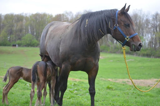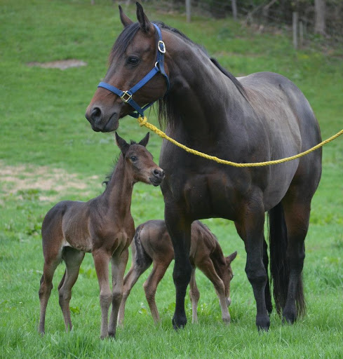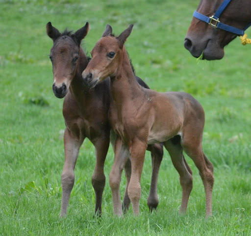 New photos of Penn State’s twin quarter horse foals were recently released showing the two bays romping in a field around their dam, PSU Shadows Bonita.