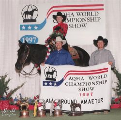 Great AQHA show horse, Conclusives Bar Cody, died Wednesday, May 8 from complications due to colic. The 23-year-old brown gelding, “Milton,” had over 3,400 points, 16 superiors, and multiple AQHA World and Reserve World Championships including titles in hunter under saddle, horsemanship (twice), equitation, and western riding.