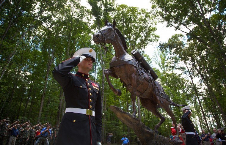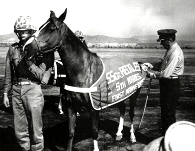 Sgt. Reckless, a scrawny 14-hand mare who served in the Korean War and earned two Purple Hearts,was honored with a monument Friday, July 26, at Virginia’s National Museum of the Marine Corps in time to commemorate the 60th anniversary of the war’s end. The horse earned the rank of Staff Sgt. after being purchased in October 1952 for $250 from a Korean boy who sold her in order to buy an artificial leg for his sister who had lost hers to a land mine. She had a Korean name, but the Americans had trouble pronouncing it, so they named her after the platoon’s radio call sign.