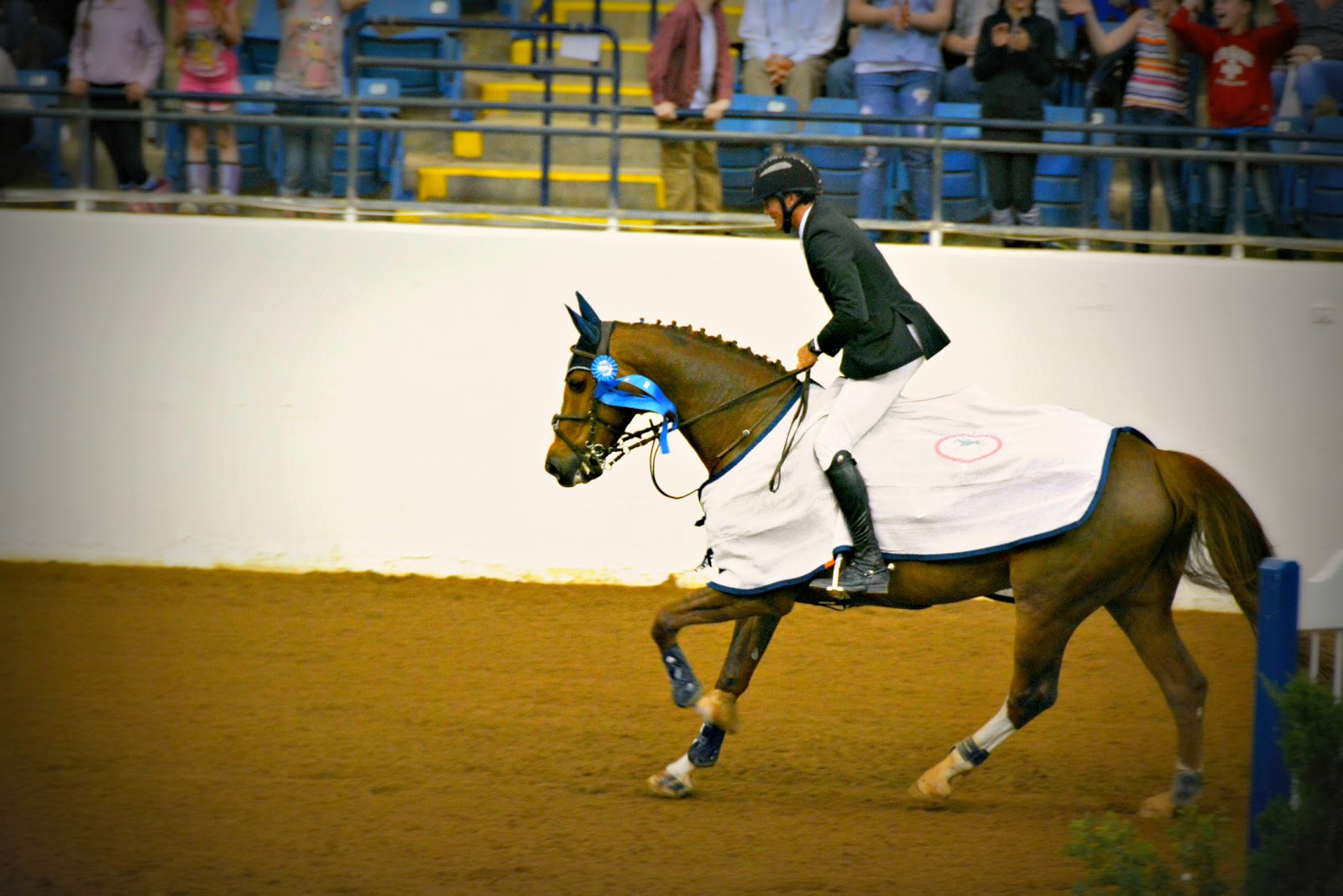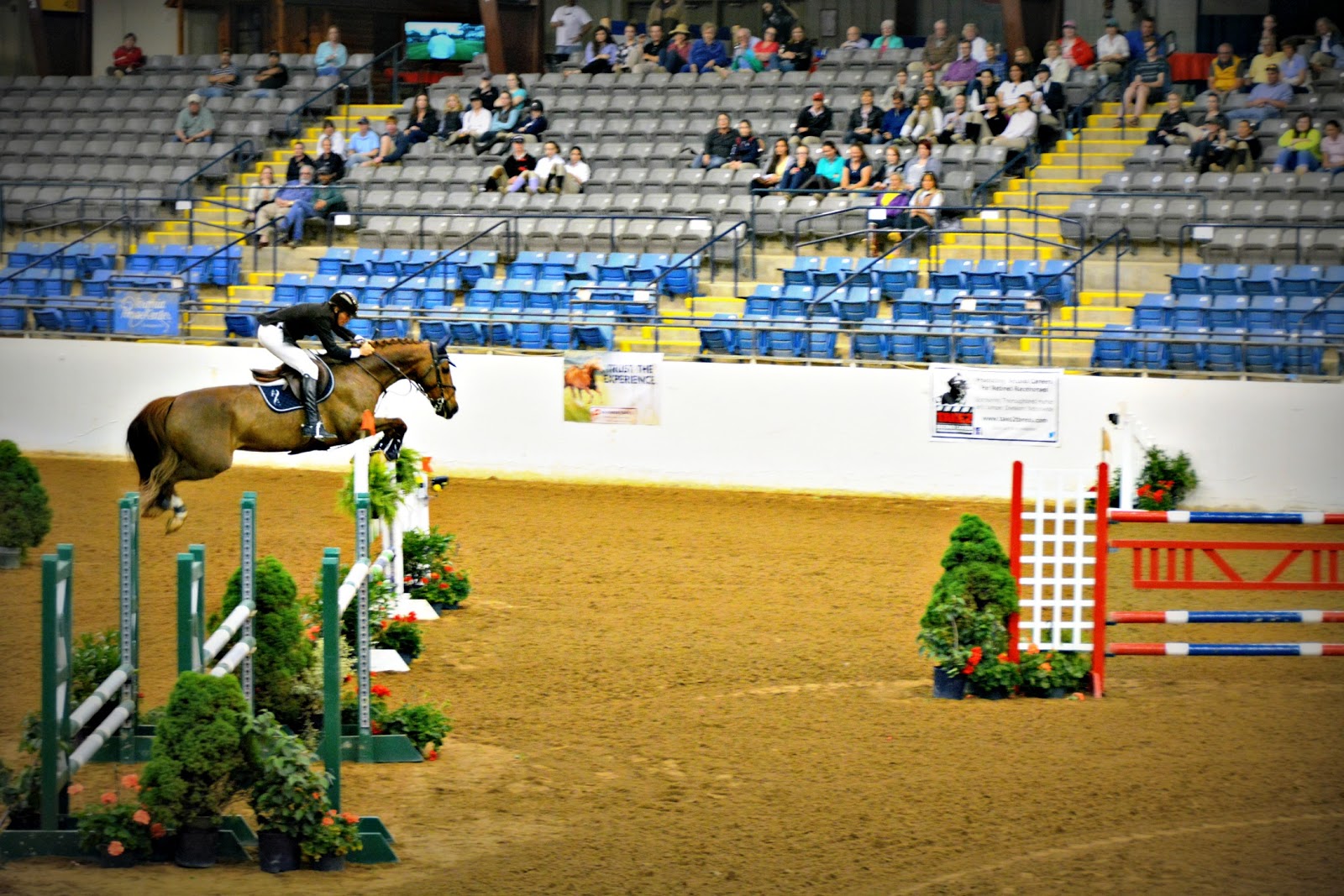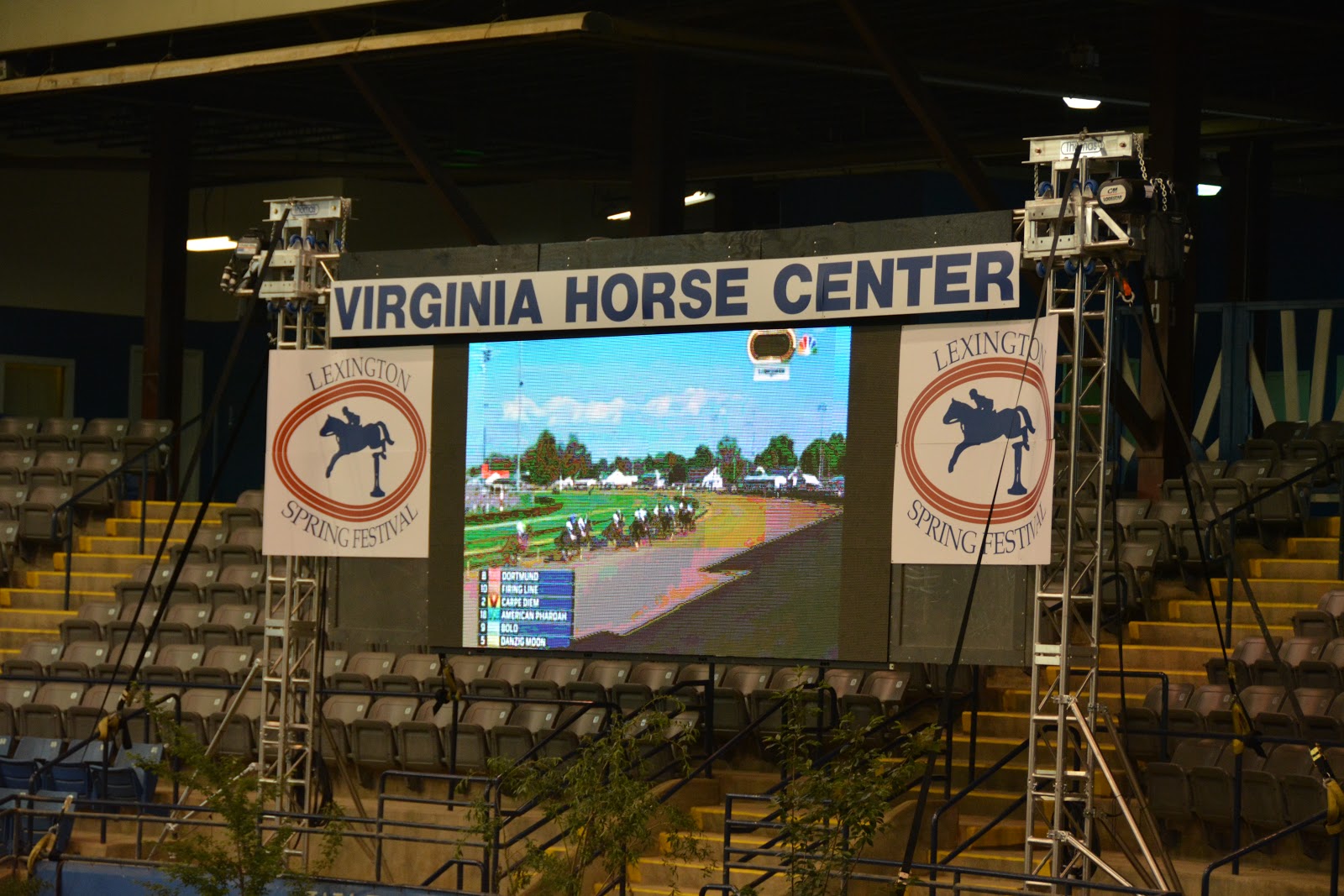 Not be left out of equestrian tradition of the first Saturday in May, prior to the start of the Grand Prix on Saturday night, many gathered in the Coliseum to watch American Pharoah win The Kentucky Derby on scoreboard’s large monitor. The crowd cheered as the favorite went under the wire to win the Run for the Roses.