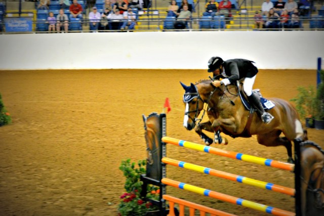 Harold Chopping riding Basje won the $25,000 George L. Ohrstrom Grand Prix on Saturday night at the Virginia Horse Center as part of the USEF “AA” Lexington Spring Encore Horse Show.