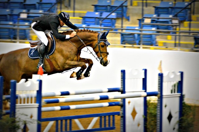 The 9-year-old Basje turned in double clear rounds with a jumpoff time of 40.507 seconds to beat the two other jumpoff qualifiers. Marylisa Leffler, of Brookeville, Maryland, on Carlot finished second with double clear rounds and a time of 42.820. Kaitlin Campbell riding Gabriel finished third.