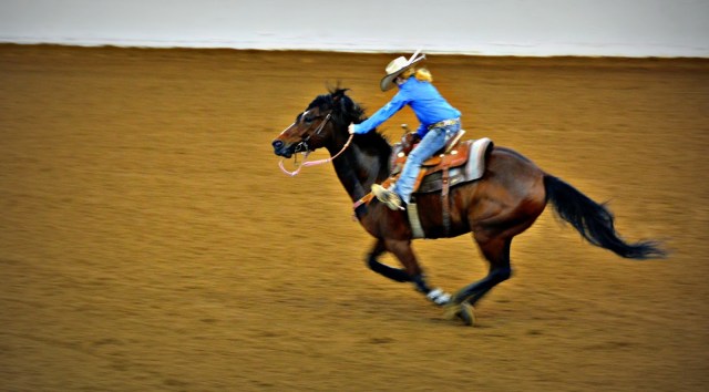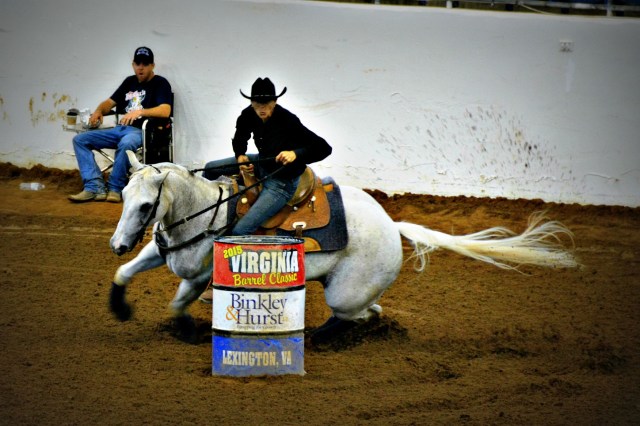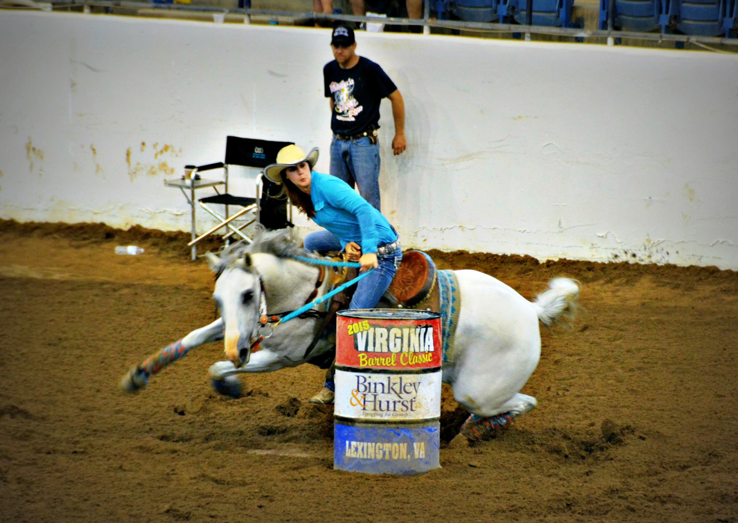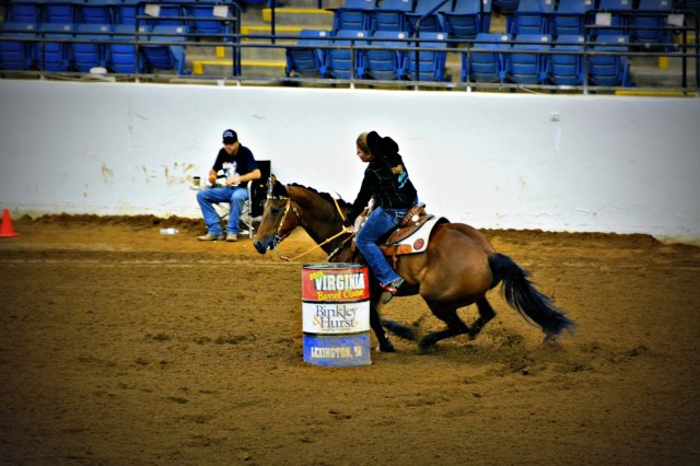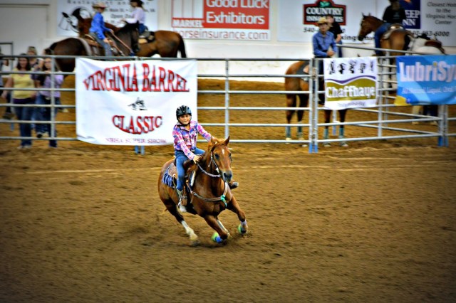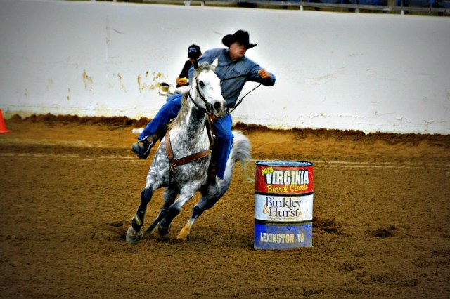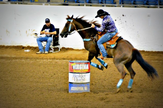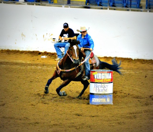 Pure speed was at the center of last weekend’s action at the Virginia Horse Center. The Virginia Barrel Classic turned up the volume and rocked the Coliseum. The only lull in the action came during the regular drags of the footing, which was done every three horses. With $10,000 in added money up for grabs, good footing was a priority. Loud, upbeat music accompanied each run, adding to the excitement of the show. Here are some photos of runs made on Sunday afternoon.