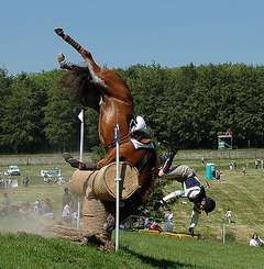| A rotational fall is extremely dangerous as the horse somersaults over the fence that is fixed and immovable. |