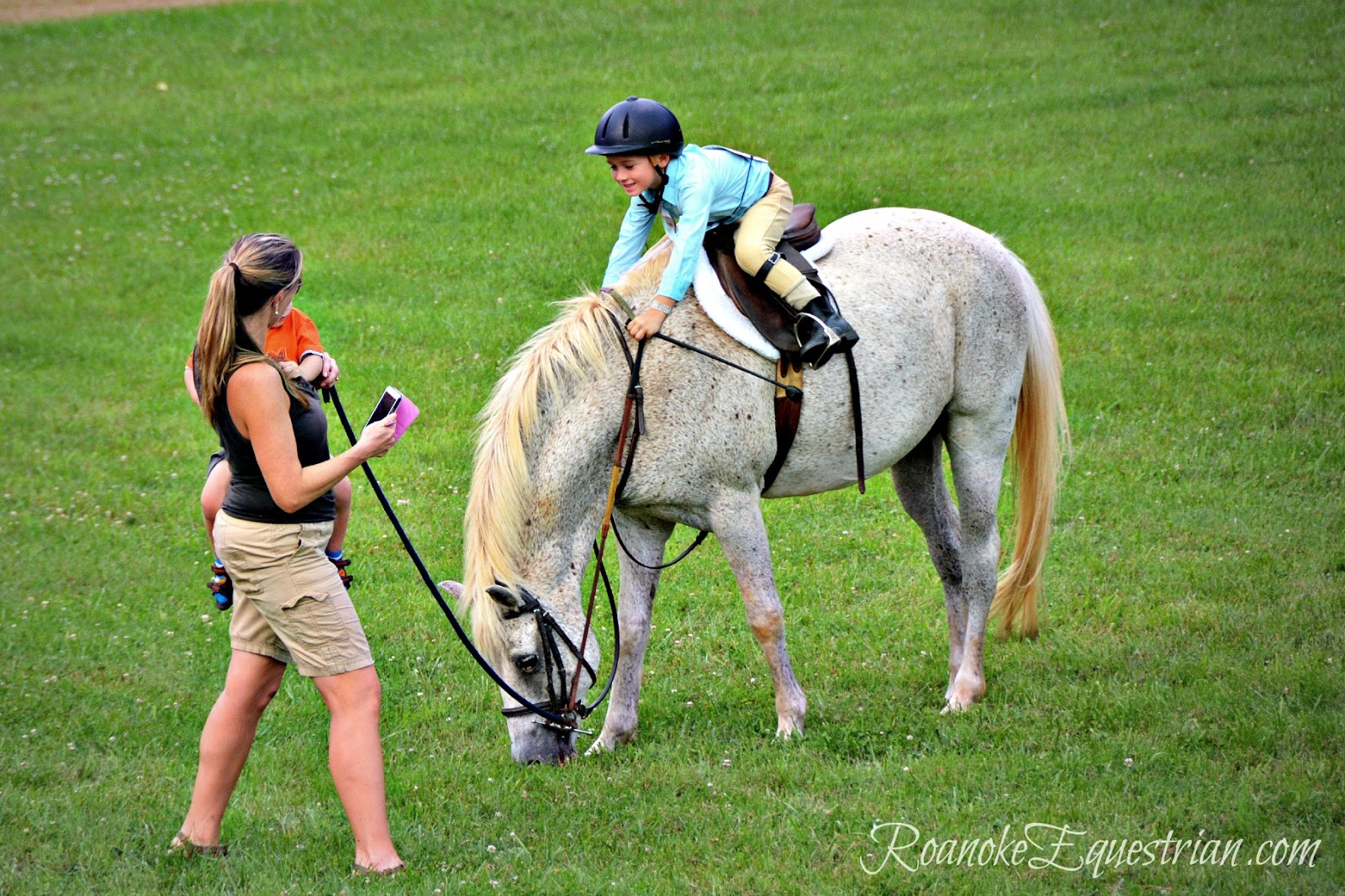 | A lead liner’s pony decides to grab a quick snack after the class. |