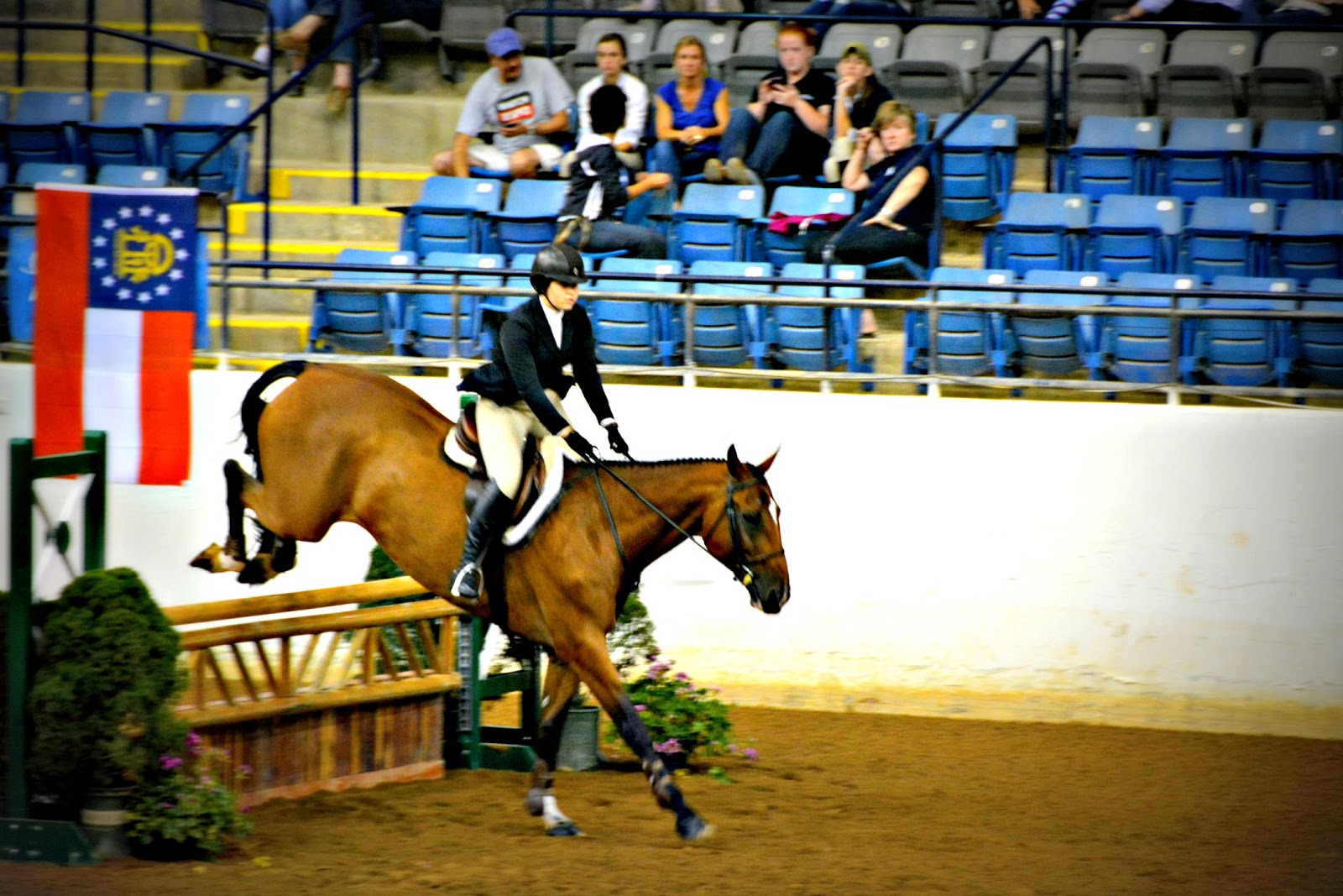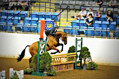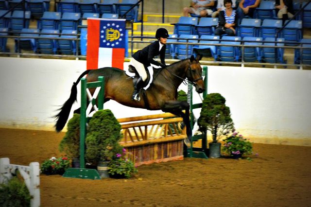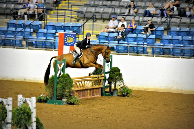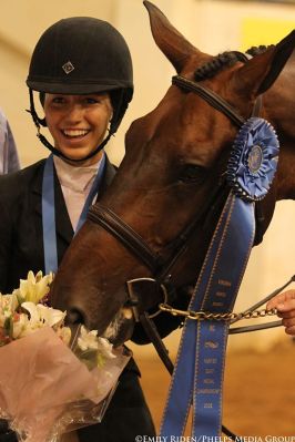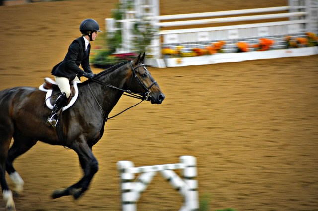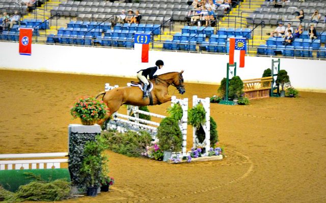 | Mary Elizabeth Cordia rode Thrift Shop to a win in the VHSA/EMO Medal Finals at the Virginia Horse Center. |