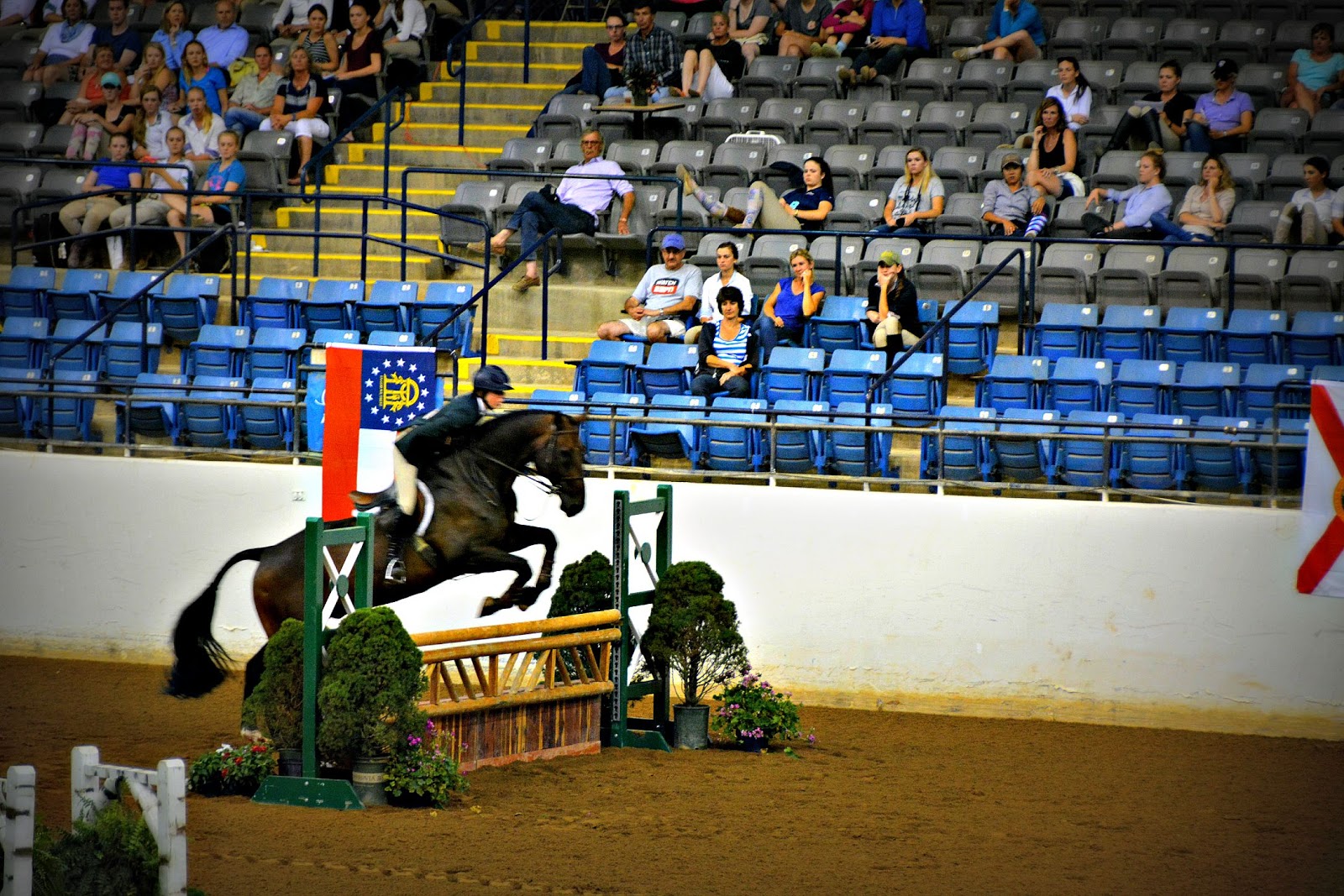 The Top 3 riders dismounted before the placings were made and mounted podiums Olympic Games style to receive their awards. Personally, it made me feel like their equine partners were a little left out standing on the side with grooms. And it was hard to follow for spectators as you could no longer tell which rider was which once they left their horses.