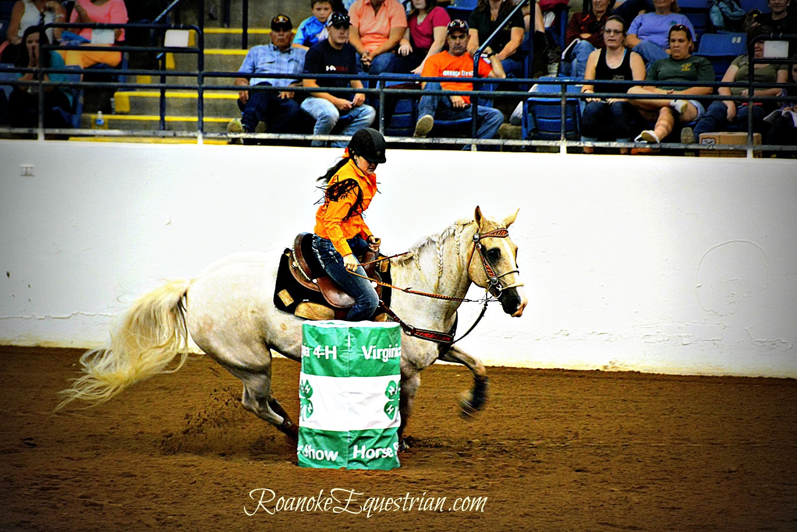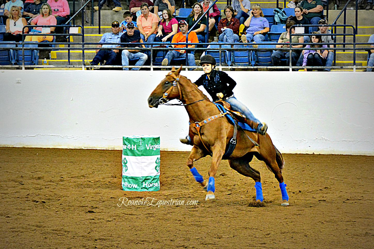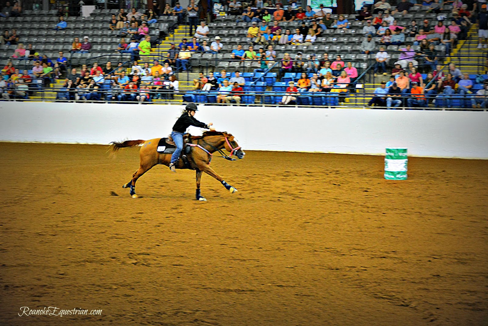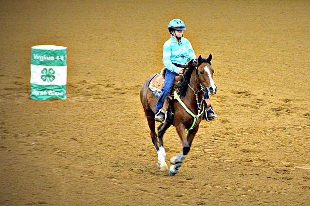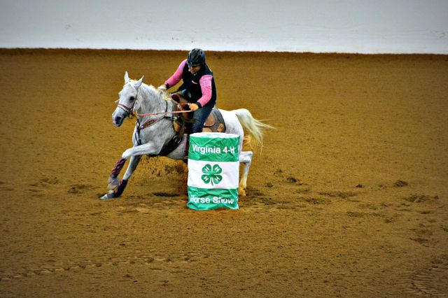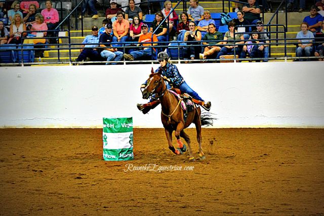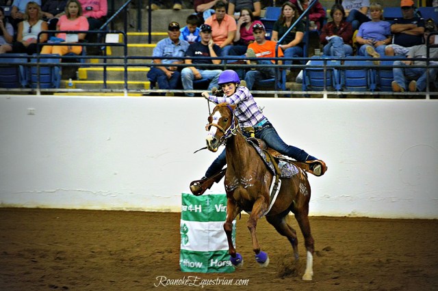 On Saturday, Sept. 12, the evening session at the Virginia Horse Center was all about speed. 4-Hers from around Virginia came together to see who was the fastest in the commonwealth. Spectators cheered on their favorites and the camaraderie of 4-H showed through as children and family from the same counties became large cheering sections. The competition varied from those that trotted through the pattern to blazing fast times from more experienced competitors. The gymkhana portion was held in the Coliseum and held center stage for a few hours until the Western Classics got under way in the East Complex across the horse center. Here are some photos from the Cloverleaf Barrels portion of the show.