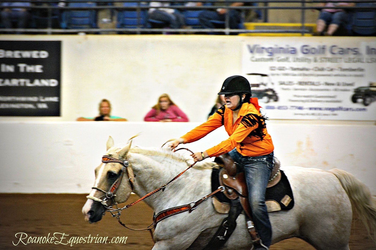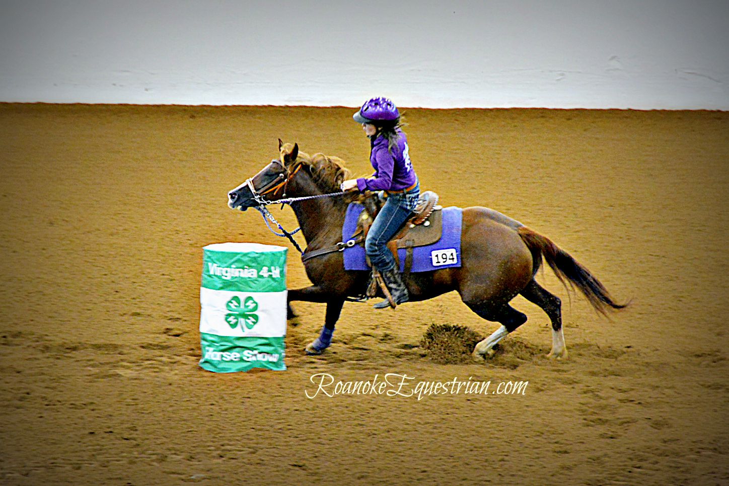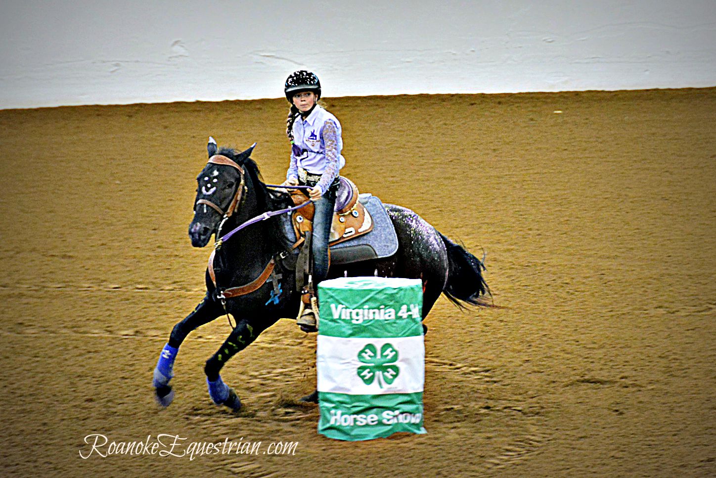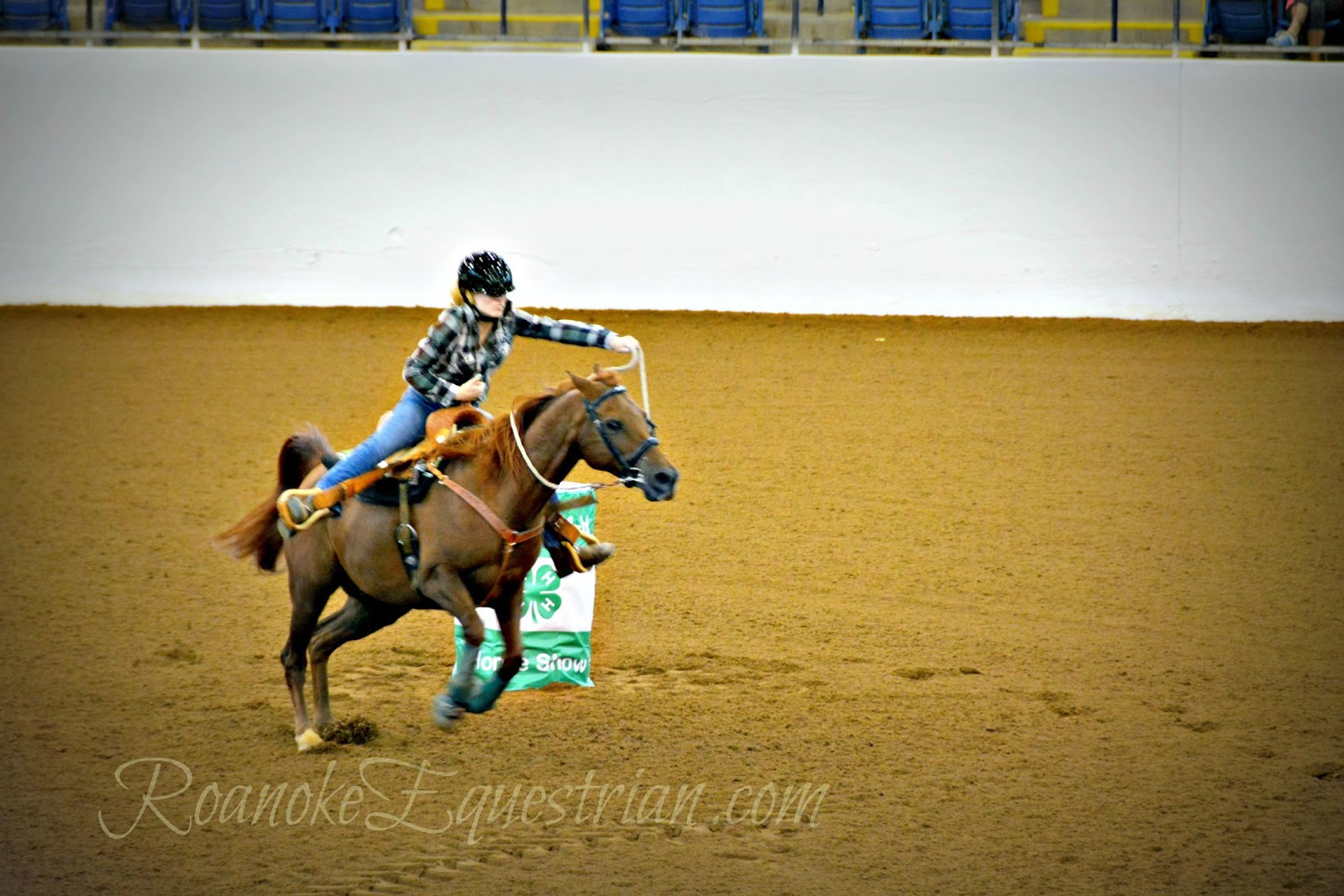 On Saturday, Sept. 12, the evening session at the Virginia Horse Center was all about speed. 4-Hers from around Virginia came together to see who was the fastest in the commonwealth. Spectators cheered on their favorites and the camaraderie of 4-H showed through as children and family from the same counties became large cheering sections. The competition varied from those that trotted through the pattern to blazing fast times from more experienced competitors. The gymkhana portion was held in the Coliseum and held center stage for a few hours until the Western Classics got under way in the East Complex across the horse center. Here are some photos from the Cloverleaf Barrels portion of the show.