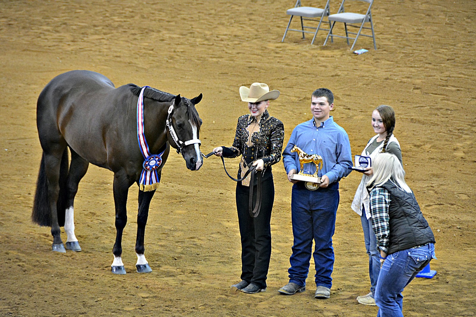 This year’s show attracted about 600 entries from states across the Eastern U.S. Another Novice Championships show was also held in Las Vegas for West Coast exhibitors. Local exhibitors included Tabitha Thompson and Laura Owen of Botetourt County. Owen had several placings at the show including a Reserve Championship in Rookie Amateur Trail on her horse ZipposHandsomeDevil. Thompson also had placings in Novice and Rookie Amateur Ranch Riding with her horse Too Tuf to be Fancy.